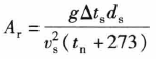 式中:x一一贴附射流的射程(m);Ar——阿基米德数;g一一重力加速度(m/s2);△ts一一送风温差(℃);ds一一圆形送风口的直径,或矩形送风口的等面积当量直径(m);vs一一送风口的出口风速(m/s);tn一一室内空气温度(℃)。
