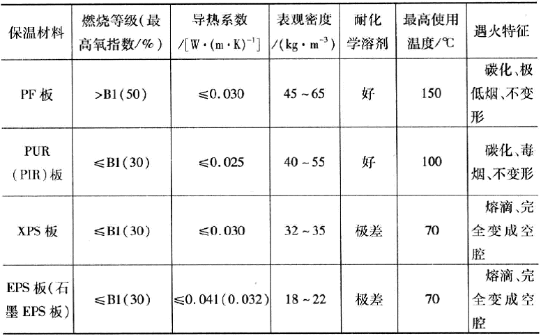 从燃烧等级、导热系数、密度、耐化学溶剂、最高使用温度、防火安全等方面横向比较EPS、XPS、PUR、PF的优劣。